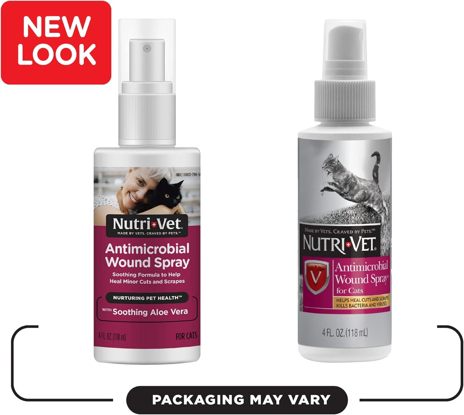Nutri-Vet Antimicrobial Wound Spray for Cats – Formulated to Sooth Skin with Aloe and Vitamin E – Helps Promote Healing and Reduce Pain – 4 oz
